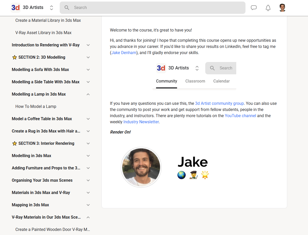 An online course with step-by-step video lessons, exclusive resources, and a thriving community of 3D Artists. Learn how to create photorealistic renderings from scratch.